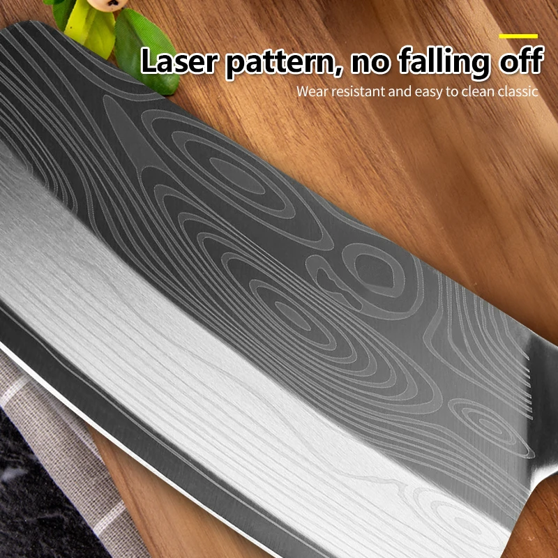 Kitchen Knife Damascus Laser Pattern High Carbon Cleaver Chef Knife Slicing Japanese Ultra Sharp Meat Butcher Cooking Knives