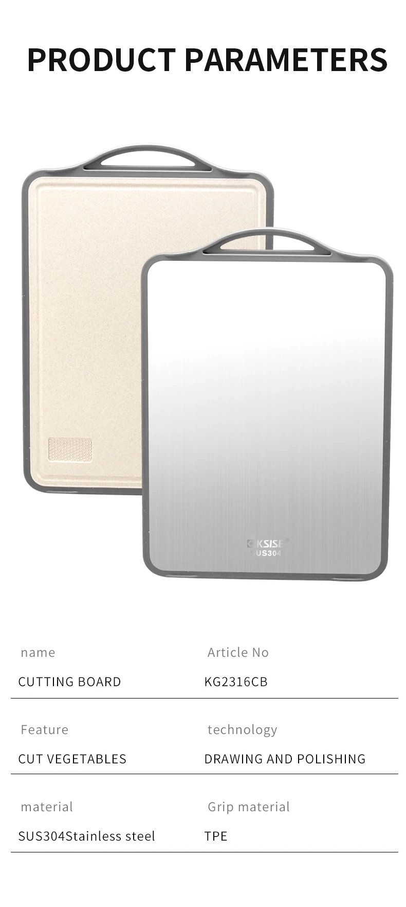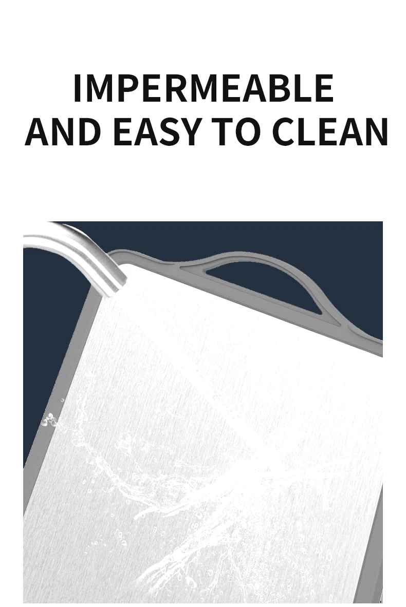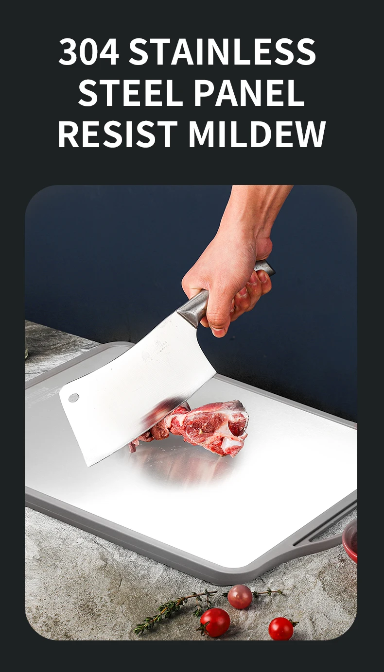304 antibacterial stainless steel cutting board can effectively inhibit the growth of bacteria on the panel, making bacteria nowhere to hide and more suitable for direct contact with food, avoiding the drawbacks of ordinary cutting boards. Antibacterial stainless steel is safer to teach, and the cleaning of antibacterial stainless steel panels is convenient, easy to clean, easily removing food residue on the panel, without leaving room for bacteria to grow;
