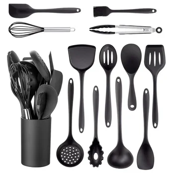 Kitchen UtensilsBlack Silicone Cooking Utensils Set Kitchenware Non-Stick Cookware Spatula Ladle Egg Beaters Shovel Kitchen Tools Accessories