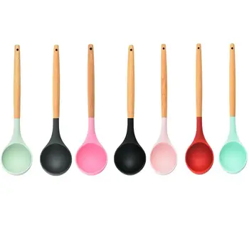 Kitchen UtensilsMulti-purpose Silicone Large Stirring Spoon Heat Resistant Soup Ladle Long Wood Handle Serving Spoon for Kitchen Utensils