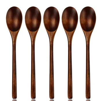 Kitchen Utensils2Pcs Wooden Spoon Long Ramen Soup Set Small Wood Coffee Teaspoon Japanese Tableware