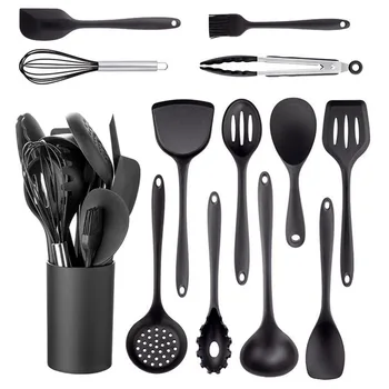 Kitchen UtensilsJANKNG Black Silicone Kitchenware Non-stick Cooking Tool Spatula Ladle Egg Beaters Shovel Soup Cookware Utensil Kitchen Cookware