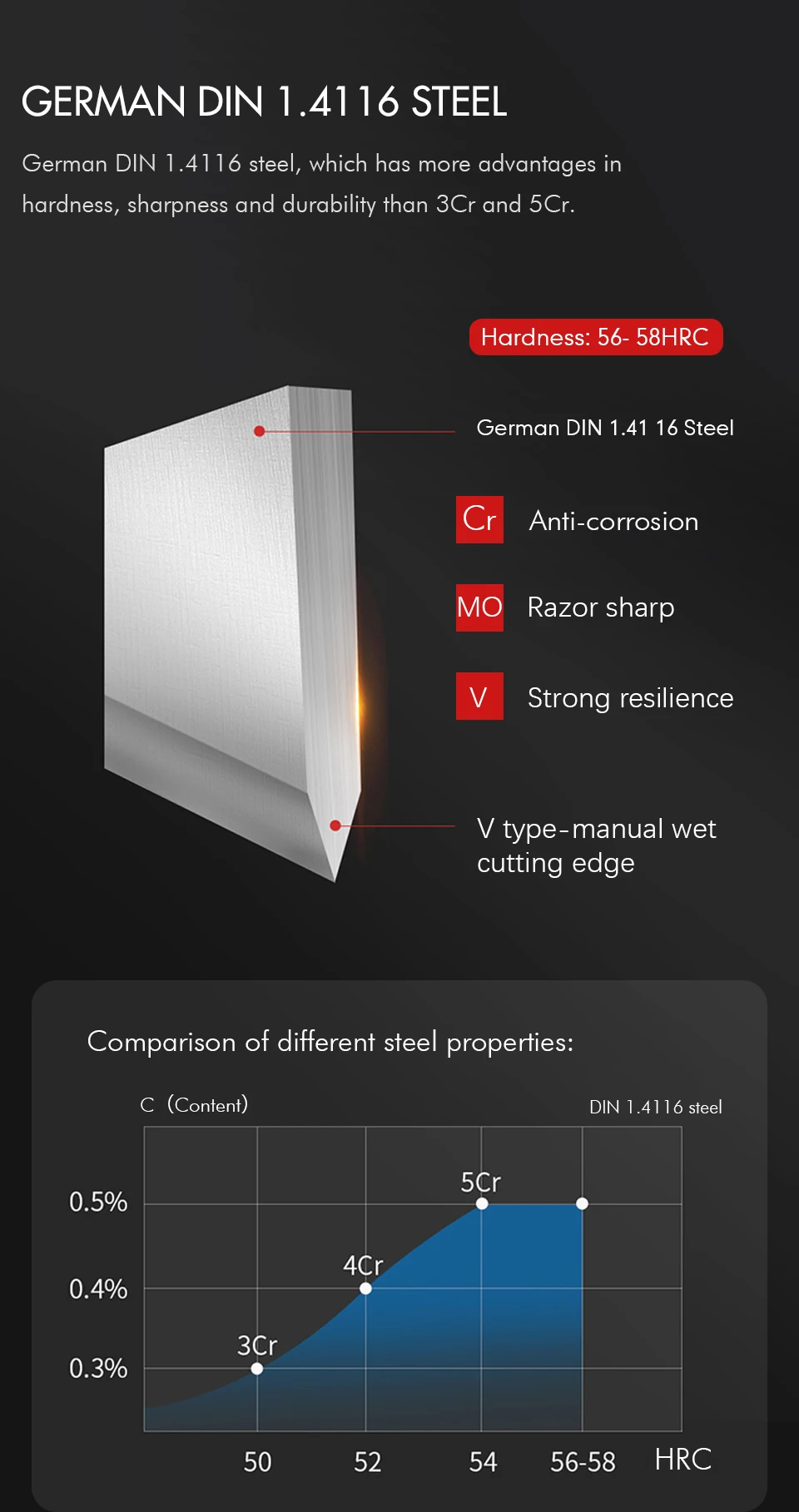 Sharpness level : the level of cutting force: 6.0-8.0 N international standards.