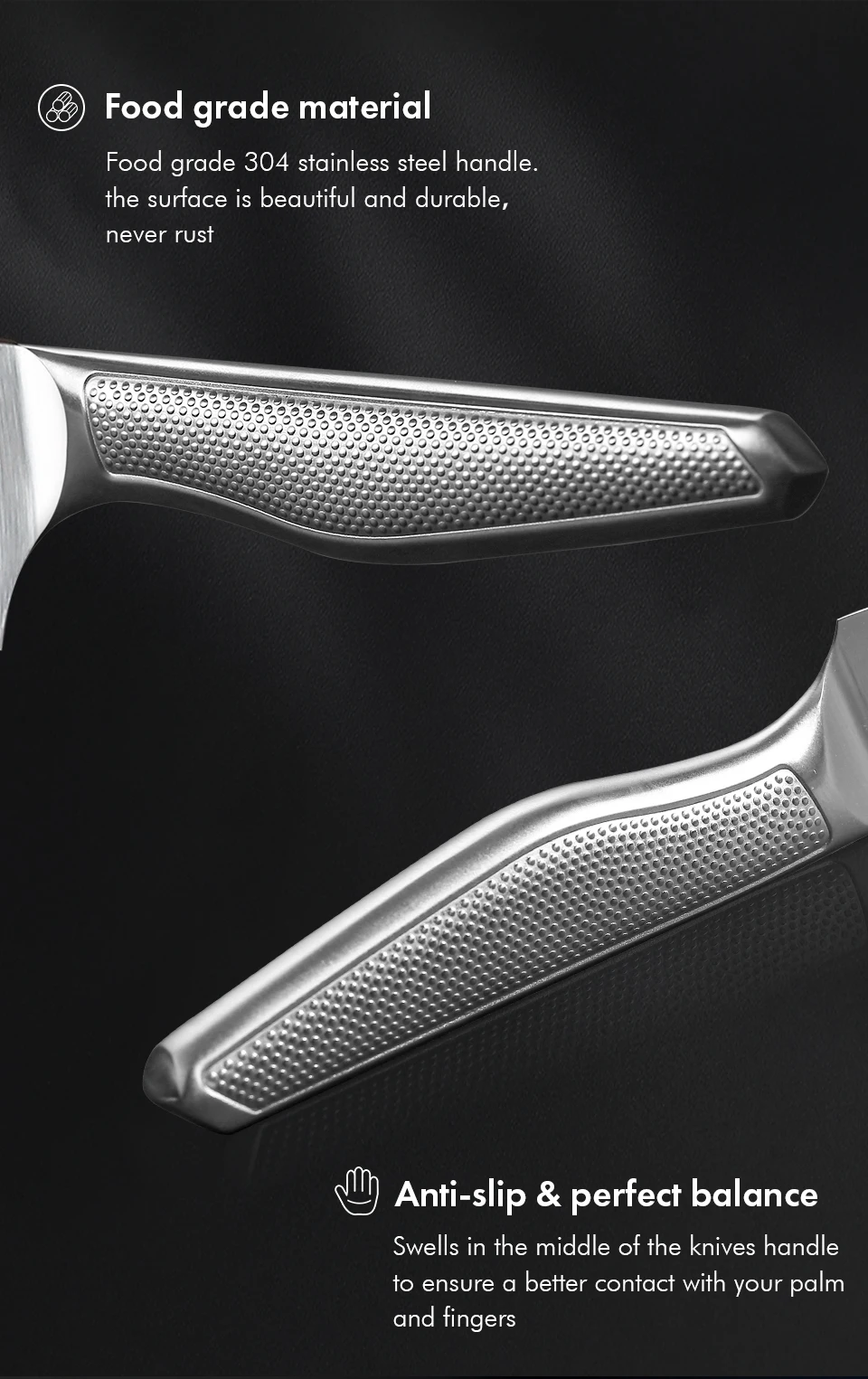 Handle: Hollow 304 stainless steel handle with life-long durability, Not to shrink and not faded.