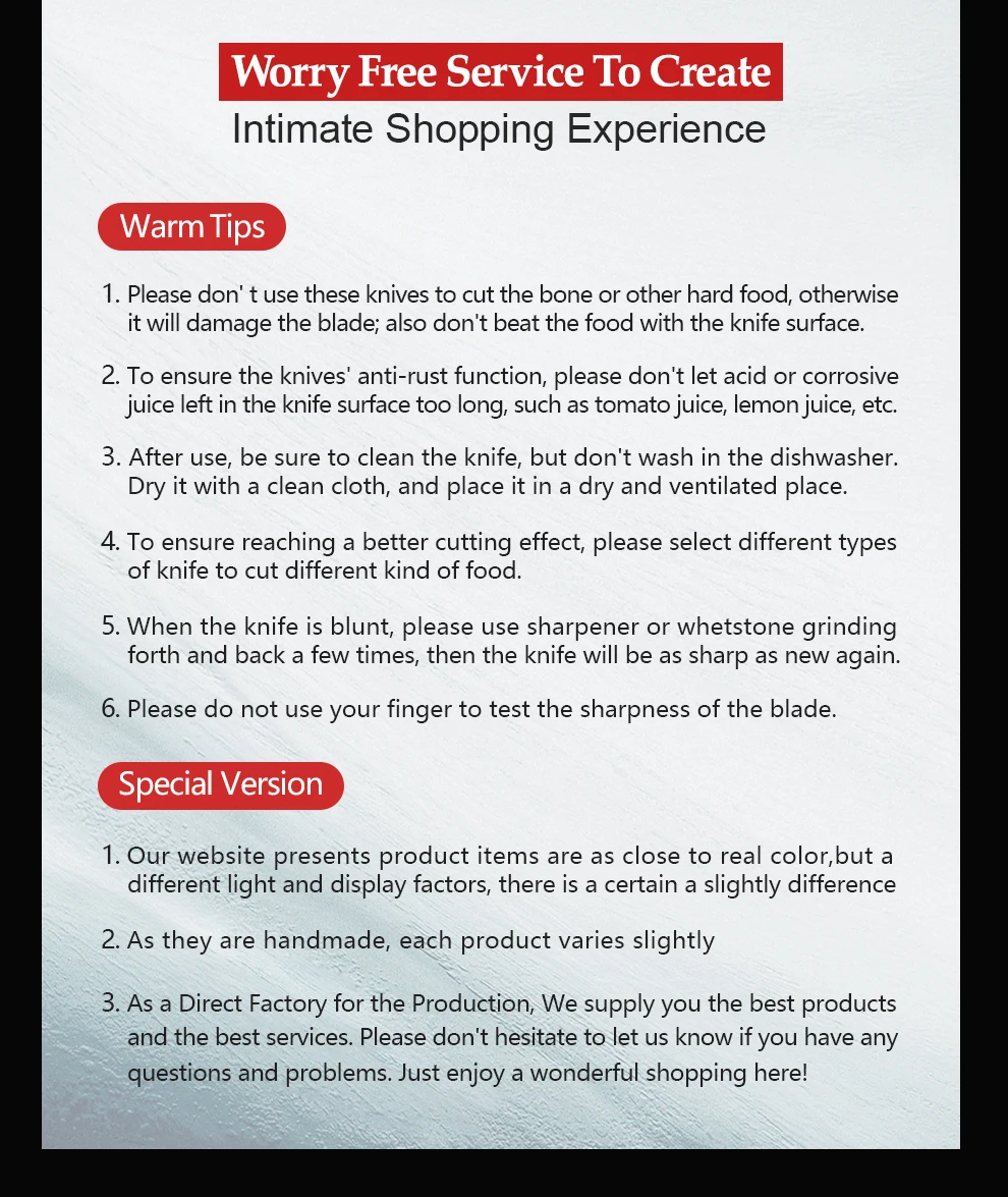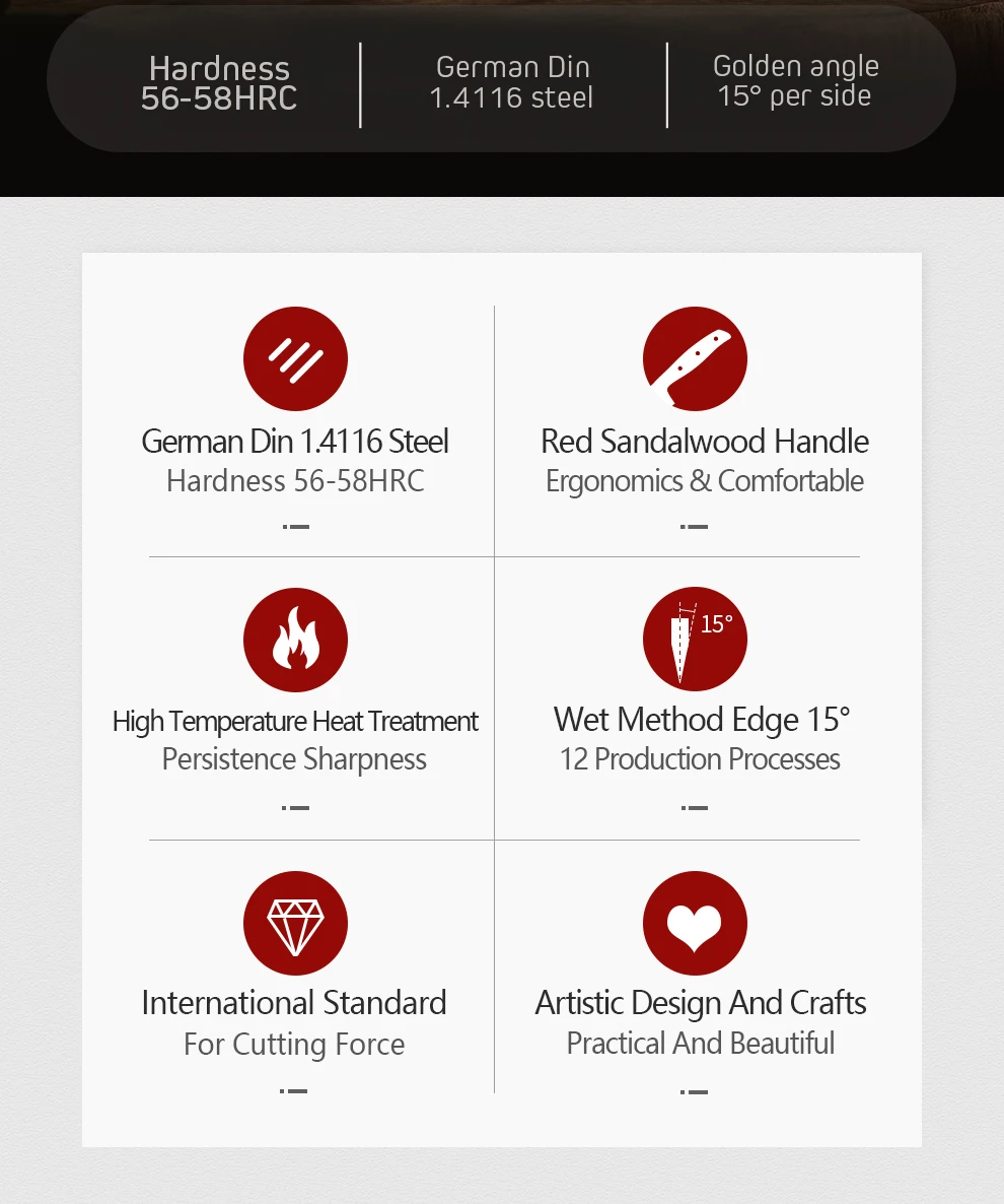 Blade Material:1.4116 Molybdenum vanadium steel of Germany ThyssenKrupp Ggroup